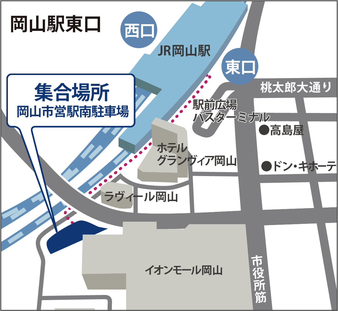 ・岡山駅東口発 12:30(集合場所:岡山市営駅南駐車場)