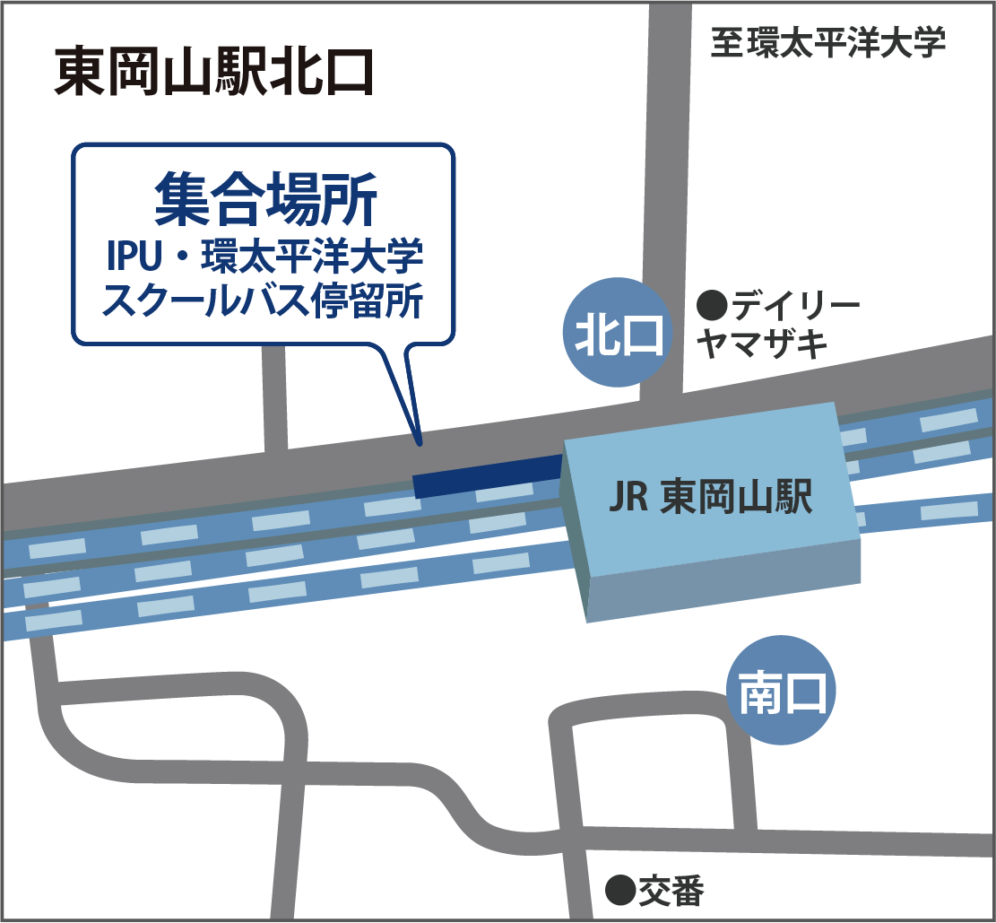 ・東岡山駅北口発 13:00(集合場所:IPU・環太平洋大学スクールバス停留所)